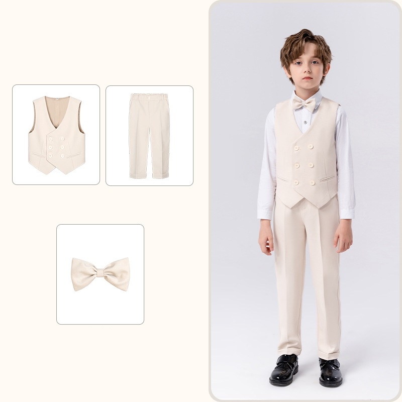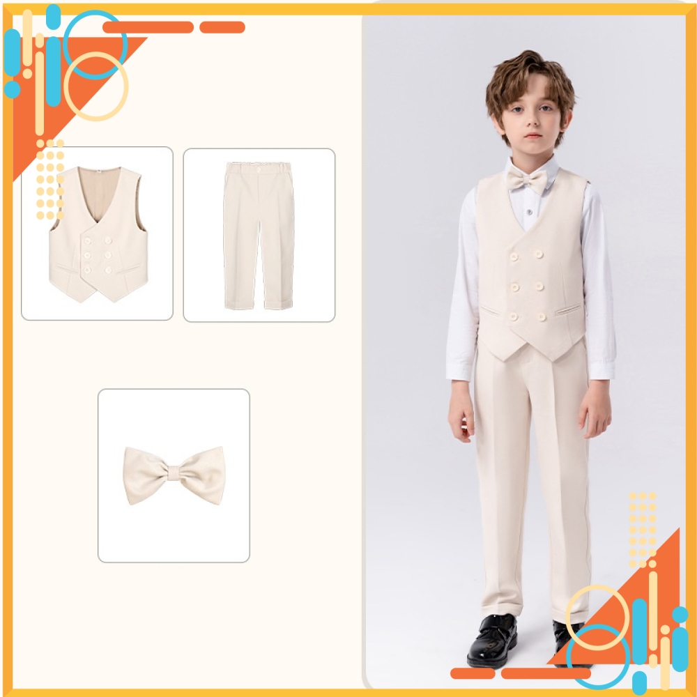 Bộ gồm 3 chi tiết: 1 áo ghile + 1 Quần tây + 1 nơ (Không bao gồm áo Sơ mi)