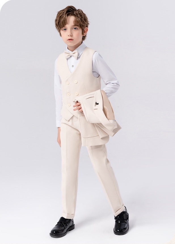 Bộ vest có độ dày vừa phải nên có thể mặc được cả 4 mùa rất tiện lợi ạ, con mặc lên sang chảnh luôn nha
