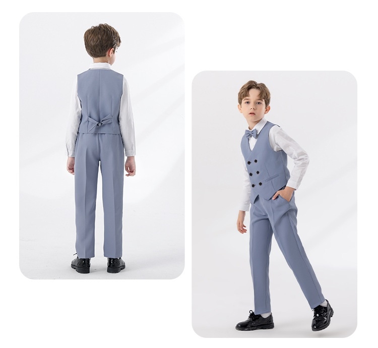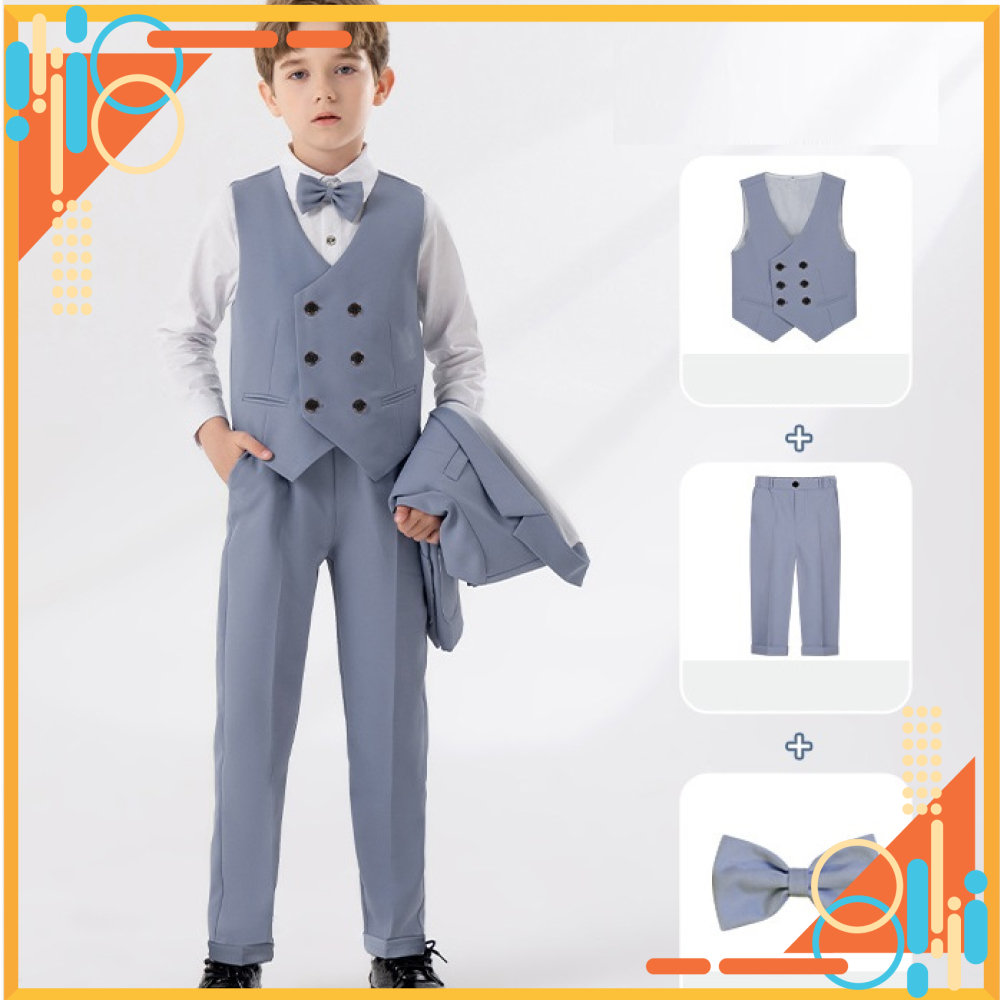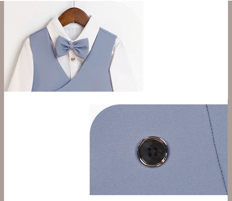 Bộ gồm 3 chi tiết: 1 áo ghile + 1 Quần tây + 1 nơ (Không bao gồm áo Sơ mi)