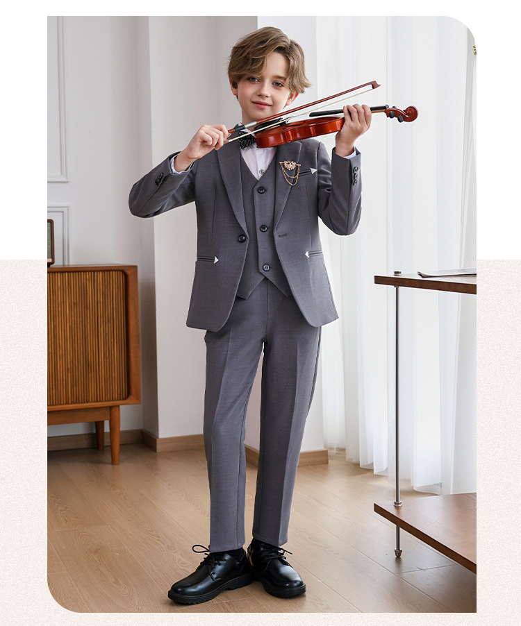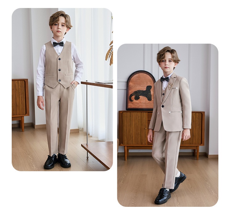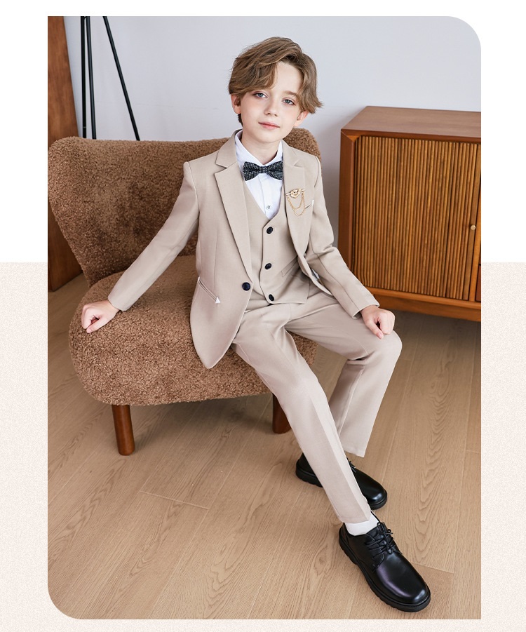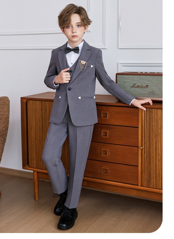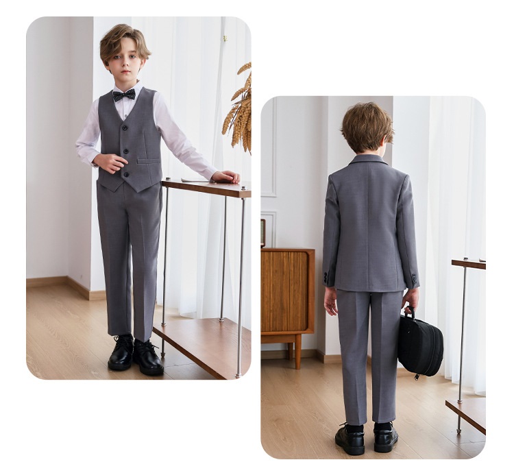 Bộ gồm 5 chi tiết : 1 áo Vest + 1 áo ghile + 1 Quần tây + 1 nơ + ghim cài áo (Không bao gồm áo Sơ mi)
