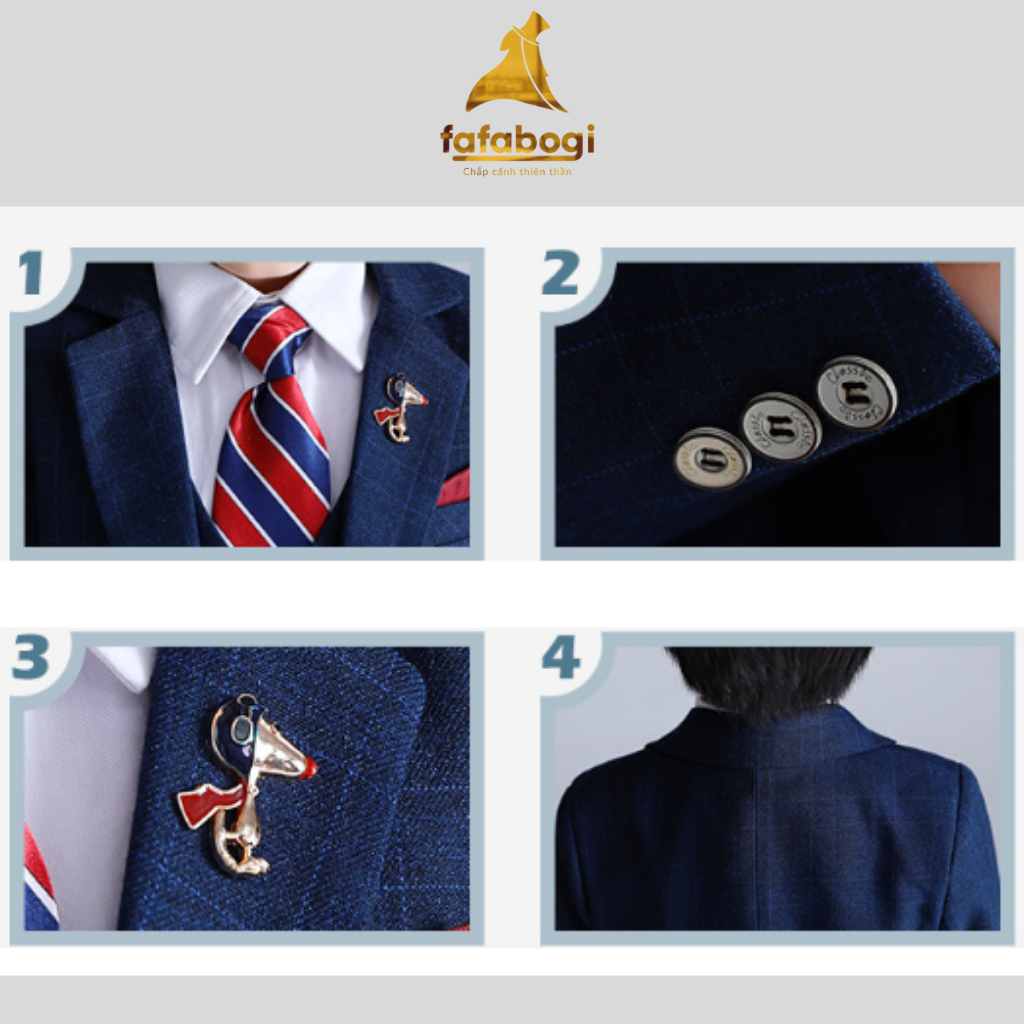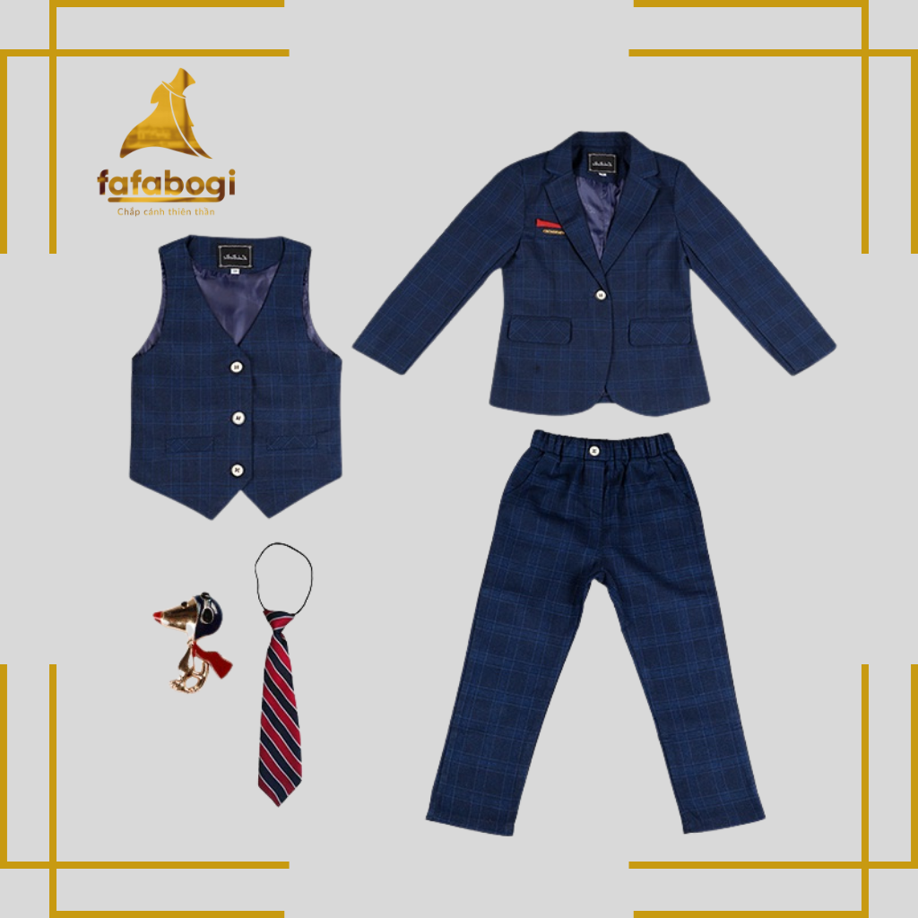 Bộ gồm 5 chi tiết : 1 áo Vest + 1 áo ghile + 1 Quần tây + 1 cà vat + 1 ghim cài áo (Không bao gồm áo Sơ mi)