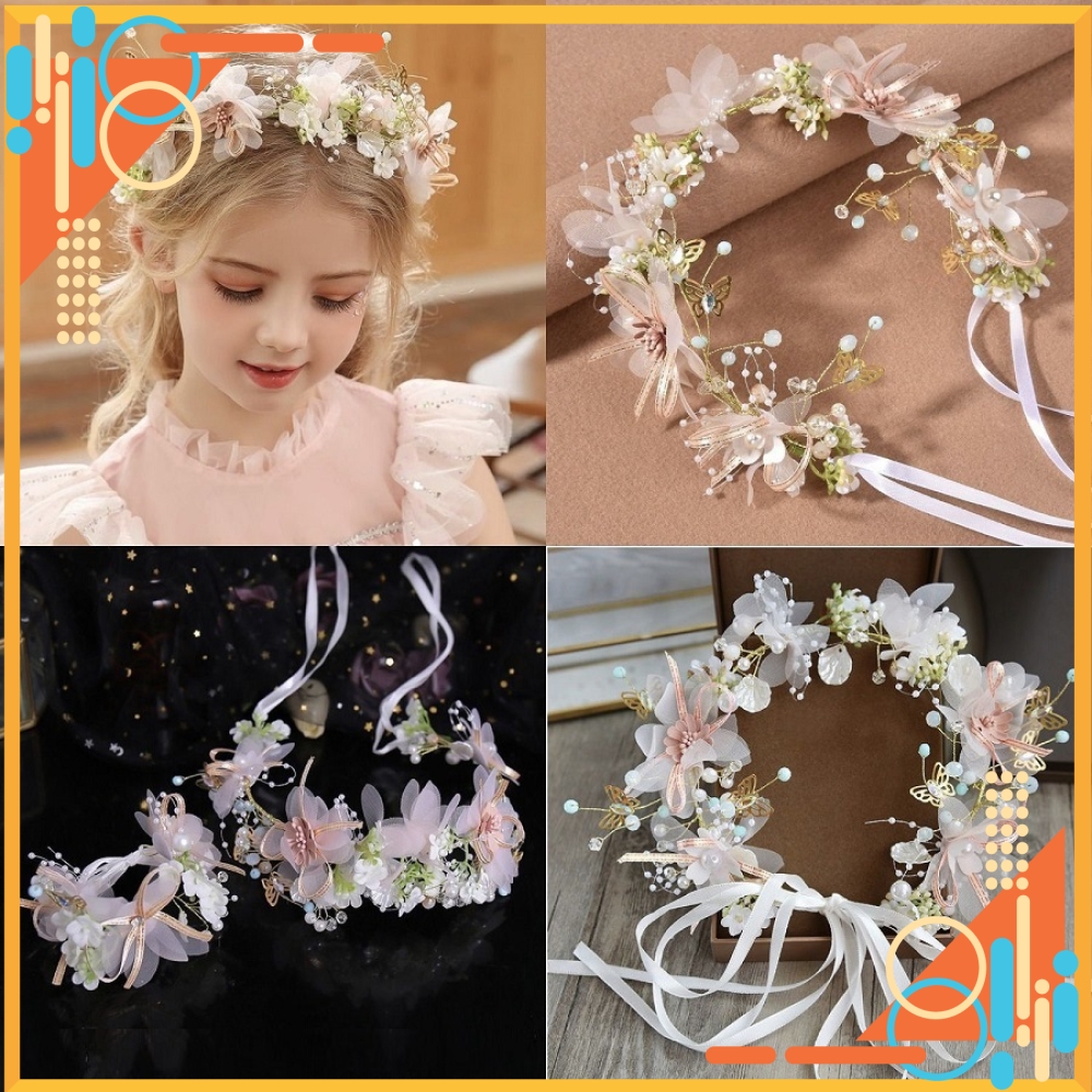 Vòng hoa đội đầu bé gái, vòng nguyệt quế cài tóc công chúa đính ngọc hoa cao cấp